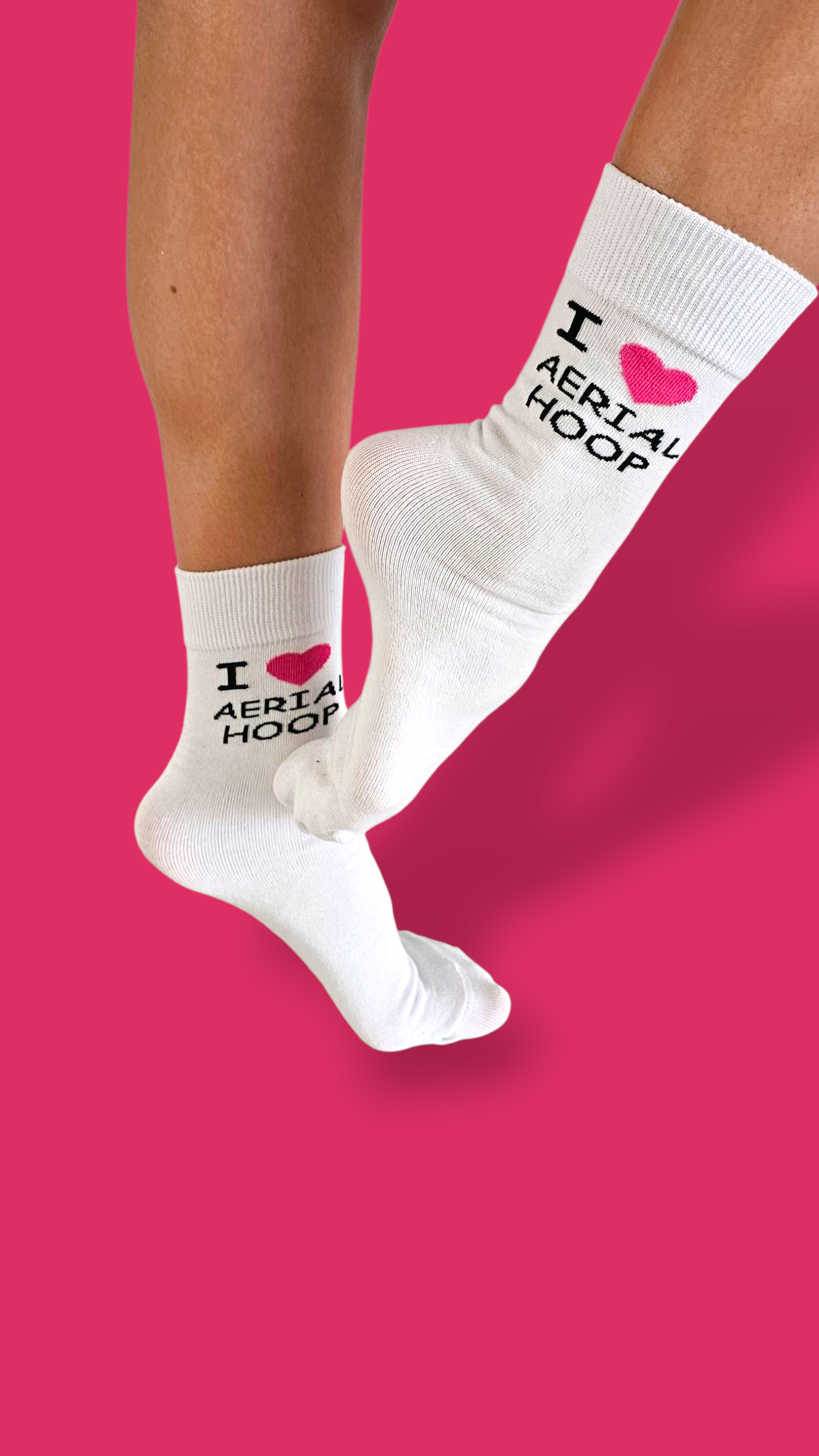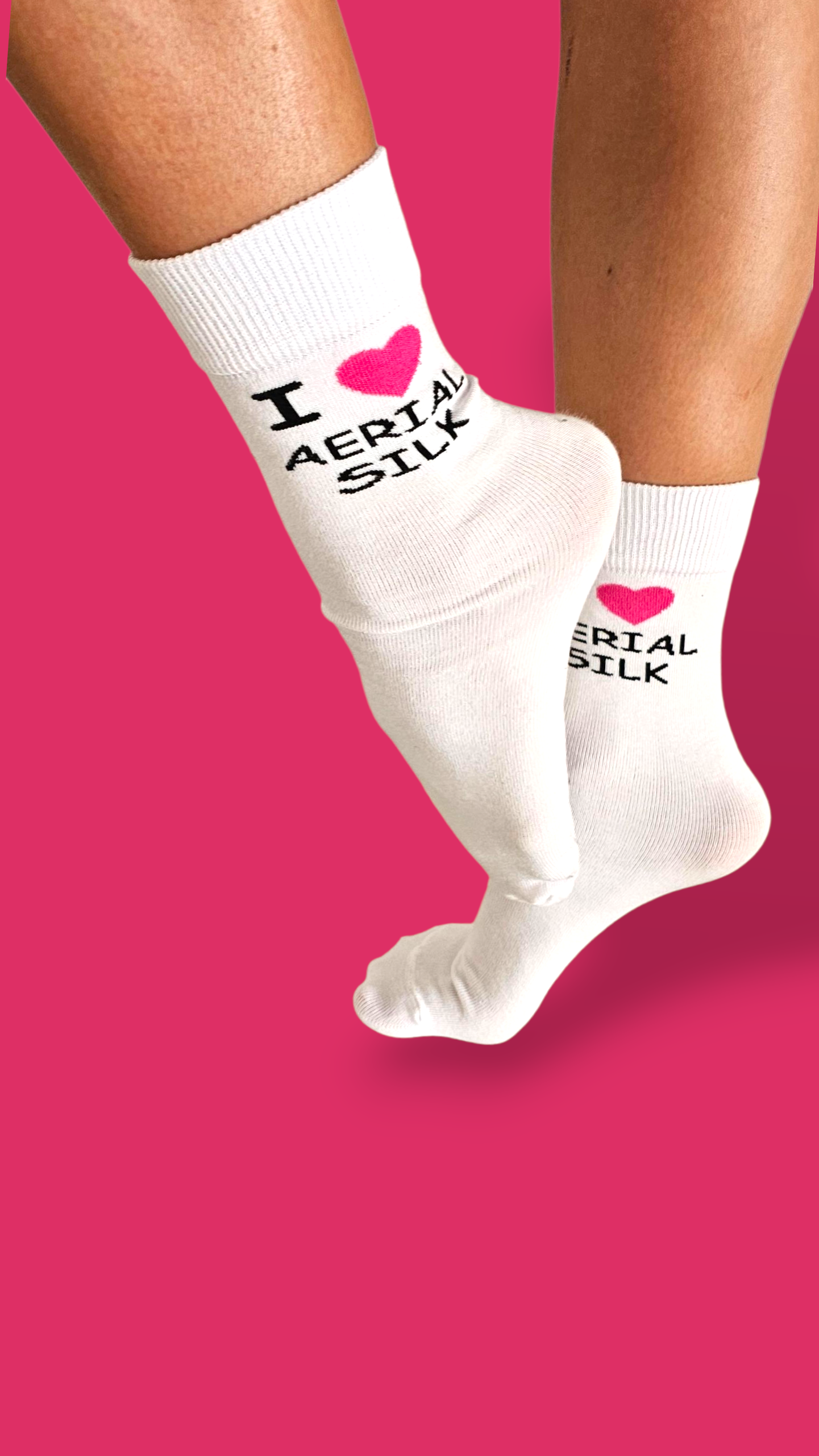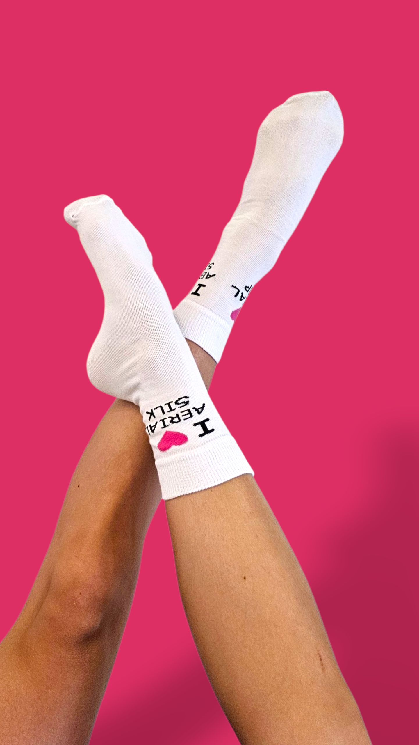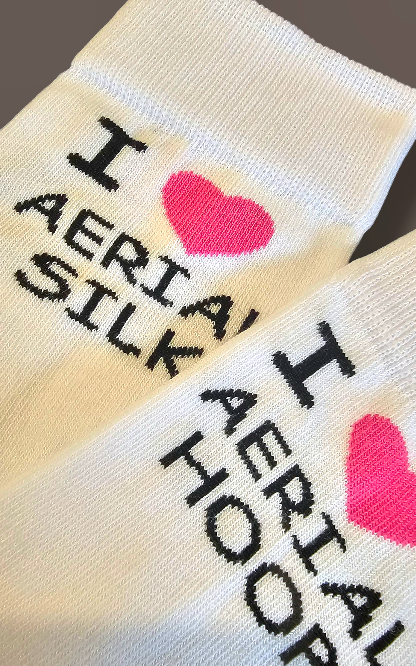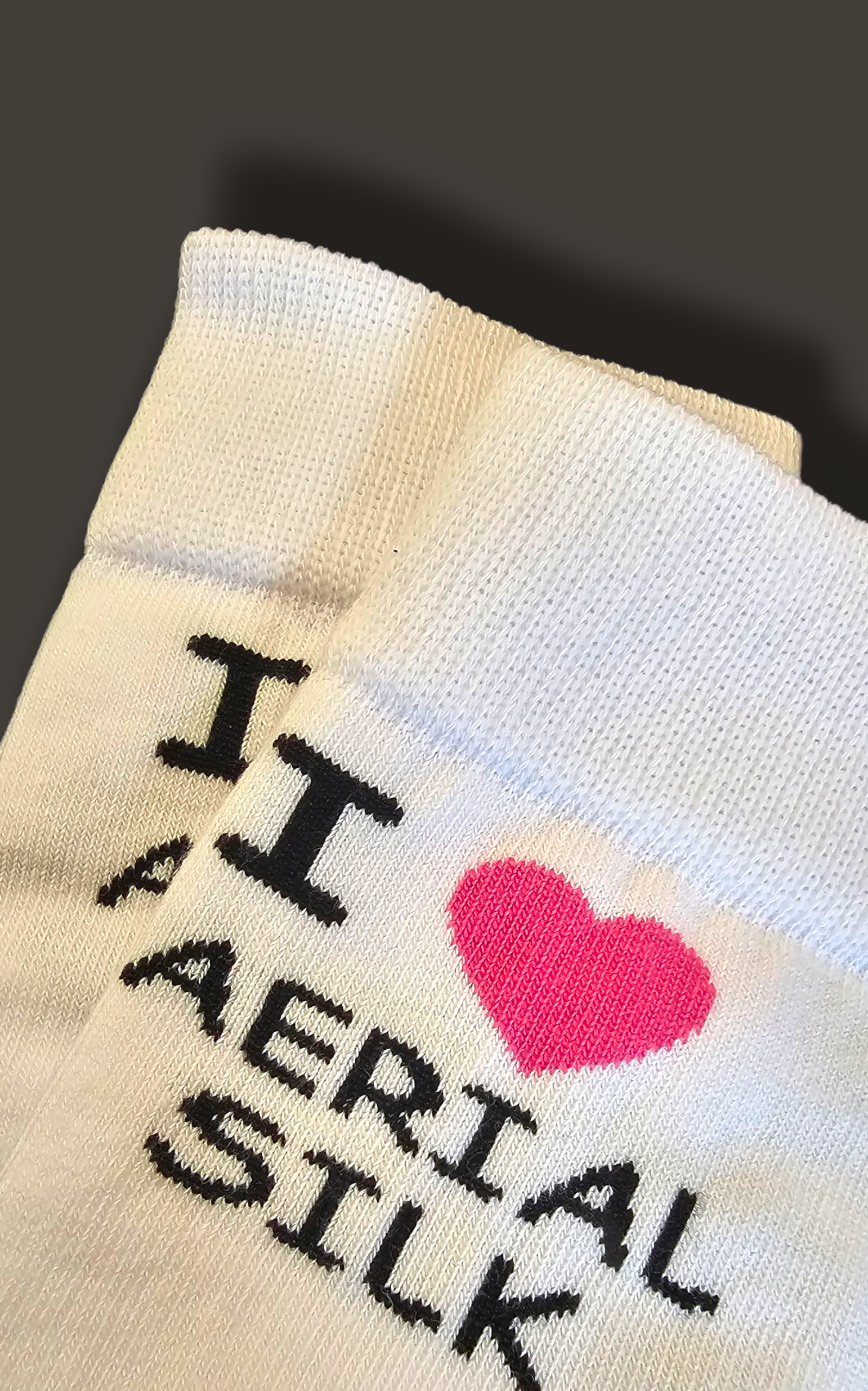Wyraź swoją pasję do aerial w każdym kroku! Te białe skarpety mają wyjątkowy nadruk: